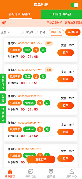 類似“碼幫平臺(tái)/FZ輔助/碼力平臺(tái)/閃電接單/蜻蜓輔助/雛菊輔助”,第三方微信輔助注冊任務(wù)管理平臺(tái)——“蜜蜂”任務(wù)平臺(tái)管理系統(tǒng),幫助有大量微信注冊需求的商家和想要0元投入月入過萬的兼職人員搭建連通的橋梁。系統(tǒng)由用戶端H5/APP、商家端H5/APP、地推商戶端H5、商家端PC、平臺(tái)端PC架構(gòu)而成,支持用戶隨時(shí)提現(xiàn),支付寶實(shí)時(shí)到賬,商家端一鍵掃碼下單,方便快捷;系統(tǒng)支撐商家每天10萬+的訂單下發(fā)和用戶隨時(shí)隨地?fù)寙危鰡危嵢蚪穑岈F(xiàn)等更多功能。。。